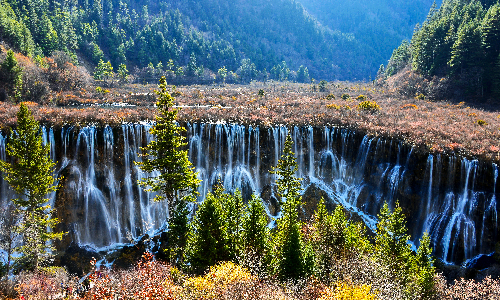 Sightseeing buses are waiting at the entrance of the valley, and there are bus stops near the scenic spots. Tourists can get off the bus and go to all scenic areas on foot and take a bus to the next spot. The tour guide will make a tour route for tourists according to different circumstances so that they can explore the beauty of the valley at a comfortable pace. The classic tour route is as follows: take a bus to Nuo Ri Lang Waterfall; then you will be transferred to Zachawa Valley to visit Long Lake and Five Coloured Pond. Next, you will go to Rize Valley to explore Panda Lake, Five Flower Lake, Pearl Shoals, Mirror Lake, etc. Then, you will return to the tourist center at Nuo Ri Lang Waterfall, and go down Shuzheng Valley to the entrance of the park. Along the way, you will visit Rhinoceros Lake, Tiger Lake, Tiger Lake, and Sparkling Lake.